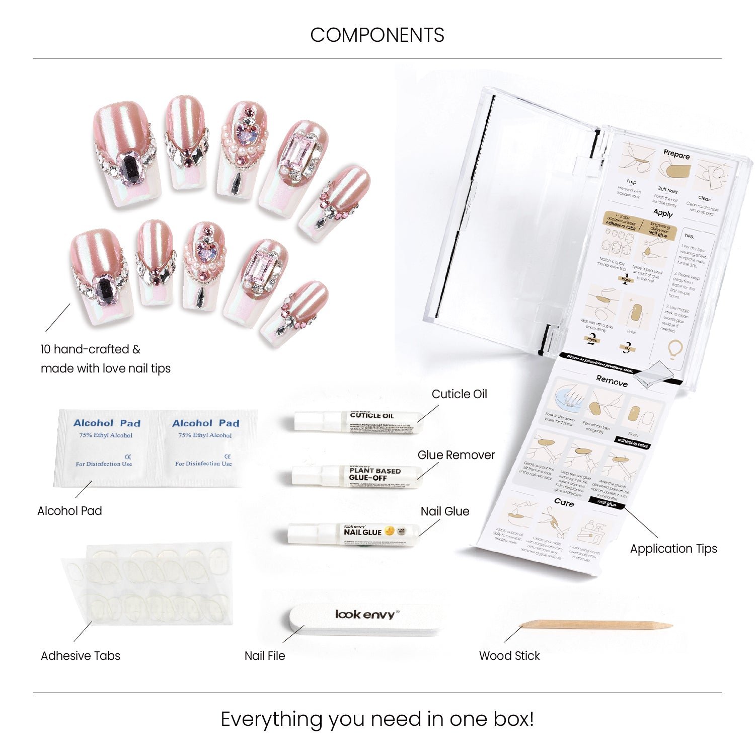 Handmade Nail Art Medium Square-Shaped Full Luxury Swarovski Crystals Decor Press-On Nails